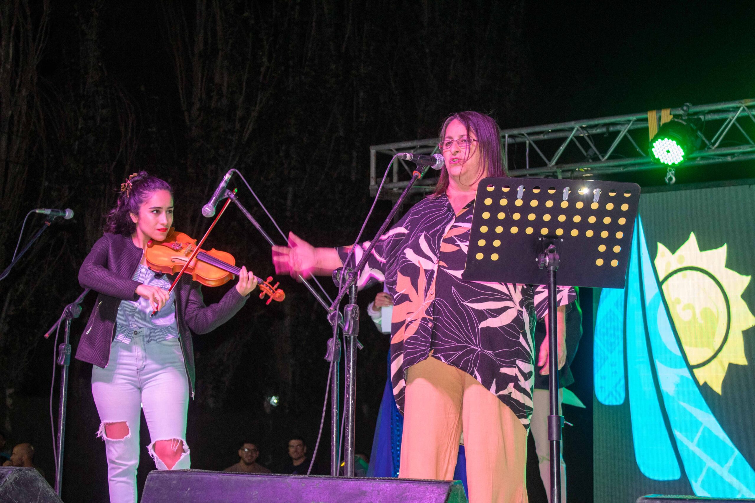 La noche estuvo llena de arte y talento: Franco Dalfovo y el Taller de Canto a su cargo deleitaron al público con piezas trabajadas a lo largo del año, mientras que el Conjunto Nuevo Cuyo ofreció un espectáculo vibrante, acompañado por una presentación especial de danza protagonizada por las candidatas al cetro vendimial.