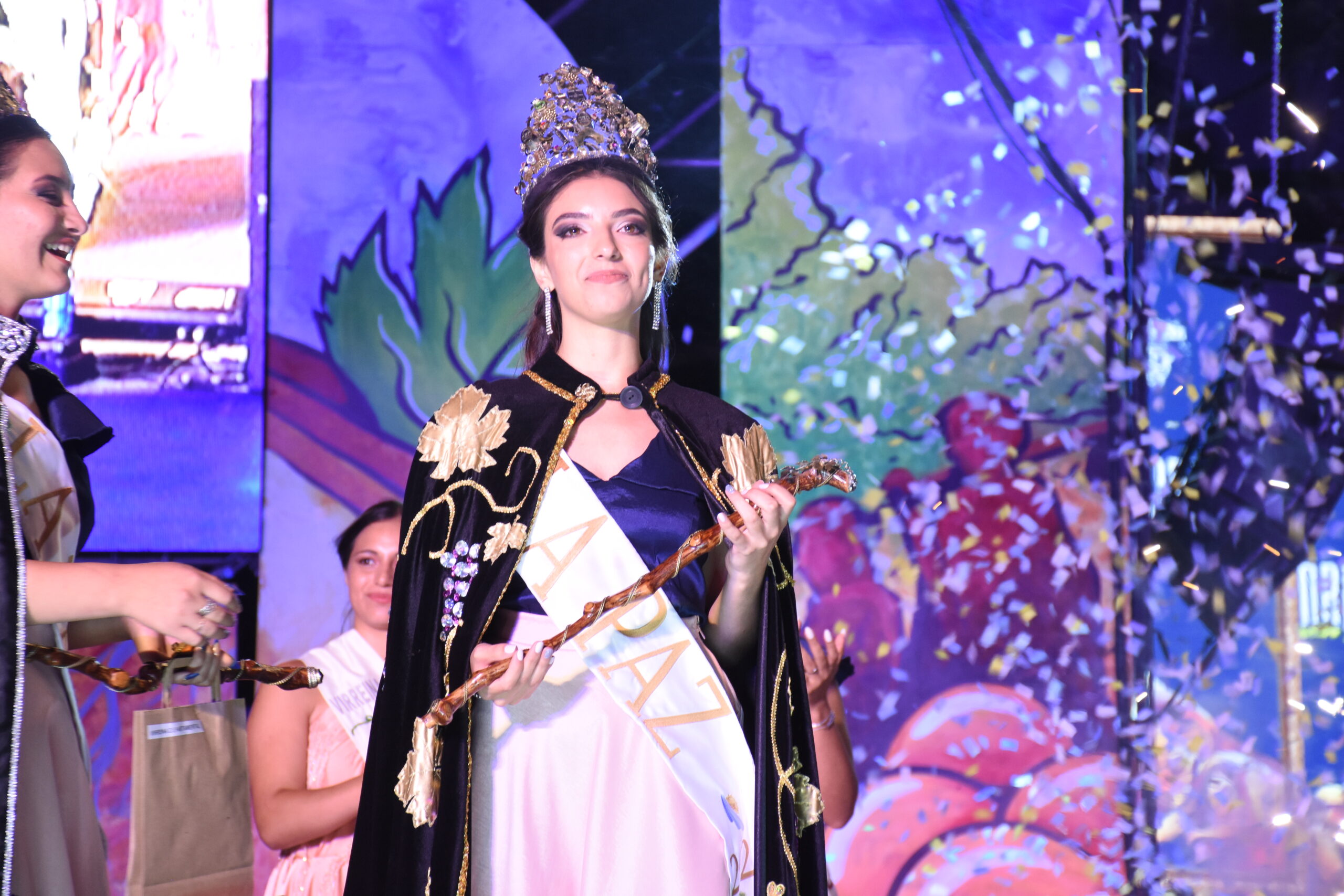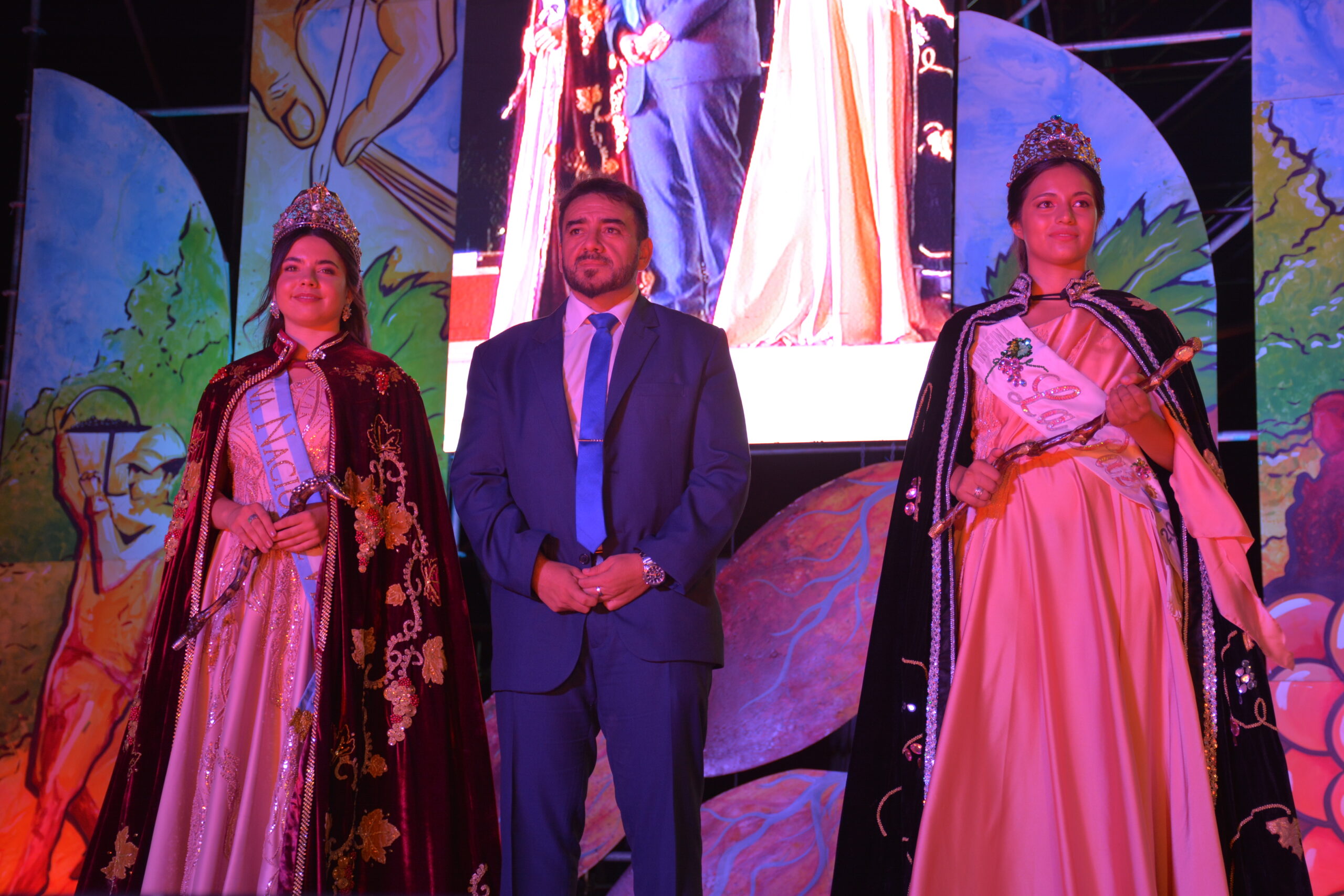 La ceremonia de coronación estuvo a cargo de la Reina Nacional de la Vendimia, Ana Laura Verde, quien se despidió de sus atributos departamentales en un emotivo acto. Además, Milagros Adaro fue designada como Virreina departamental, mientras que Valentina Abigail Escudero Lucero se llevó el título de Reina del Festival de La Paz y el Canto de Cuyo, y Cinthia Jacqueline Pérez fue proclamada Reina del Turismo.