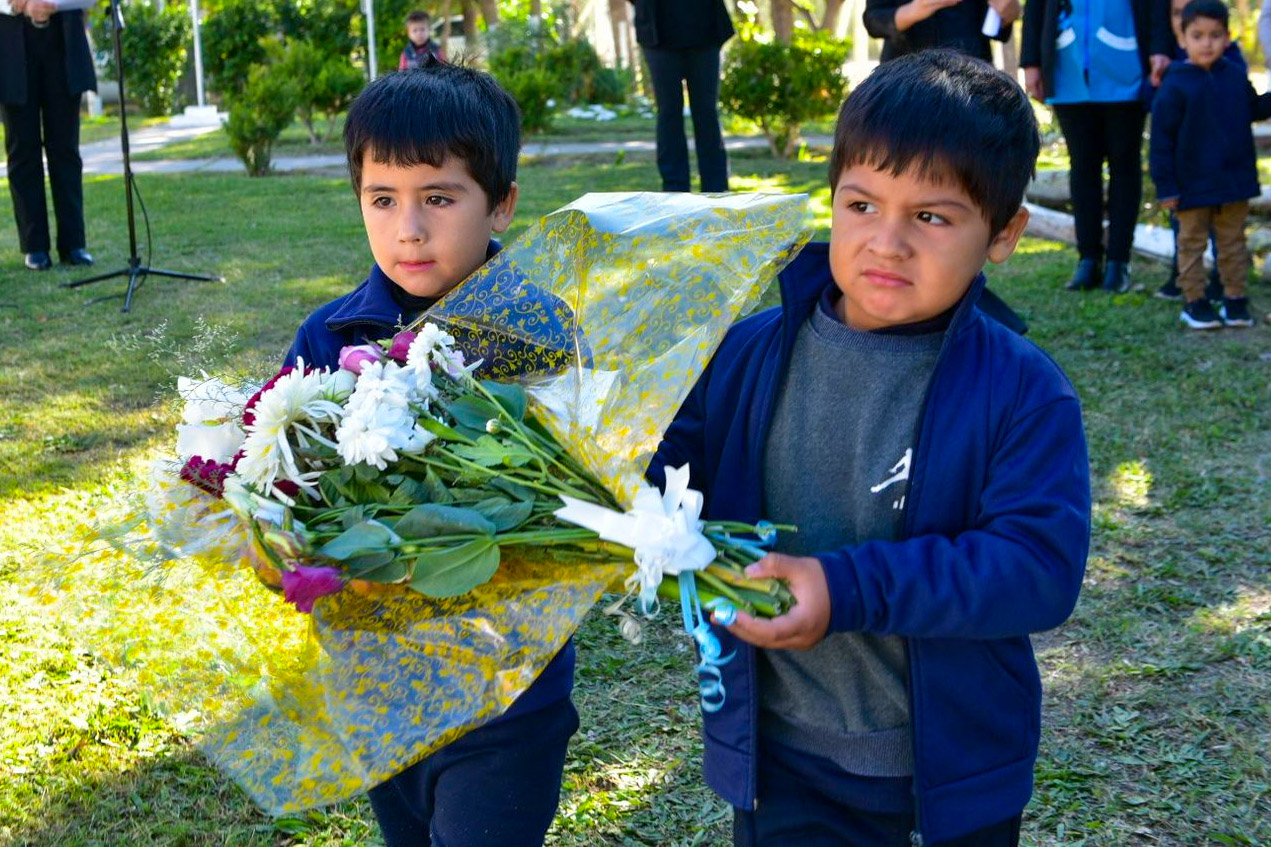 Frente al primer monumento de la provincia en honor a los Héroes de Malvinas, se realizó un minuto de silencio en memoria de los caídos en combate. Luego, estudiantes de la institución depositaron una ofrenda floral, reafirmando el reclamo histórico de soberanía nacional sobre las Islas Malvinas. El Director de la escuela, Fabián Gauna, agradeció la presencia de los asistentes y brindó un especial reconocimiento a los veteranos.
